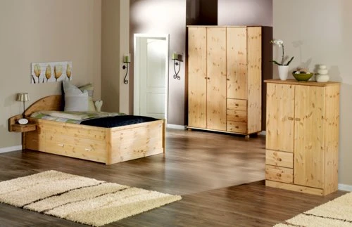 | Tiroir | Face avant: Pin massif, Sommier: HDF (panneau de fibres haute densité)Les panneaux HDF consistent de fibres de bois coupés très fins, collés sous pression., Côté: Pin massif, Dossier: Pin massif |
