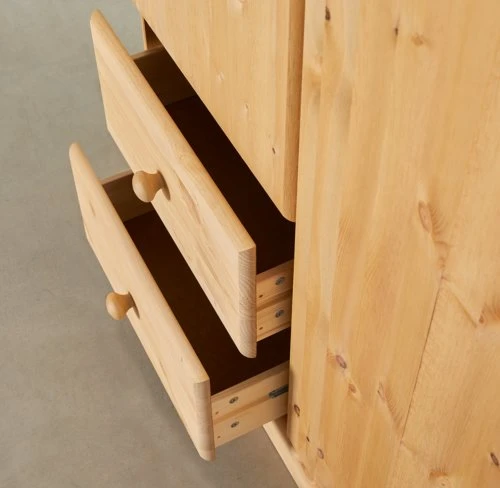 | Tiroir | Face avant: Pin massif, Sommier: HDF (panneau de fibres haute densité)Les panneaux HDF consistent de fibres de bois coupés très fins, collés sous pression., Côté: Pin massif, Dossier: Pin massif |