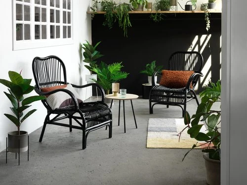 En MDF mélaminé. Cadre et piètement : acier. Ø40 x H40 cm