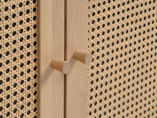 Bois massif, polyrotin et placage décoratif. Portes soft-close. l148 x H85 x P45 cm