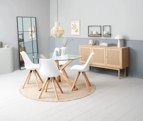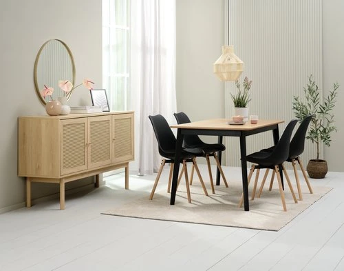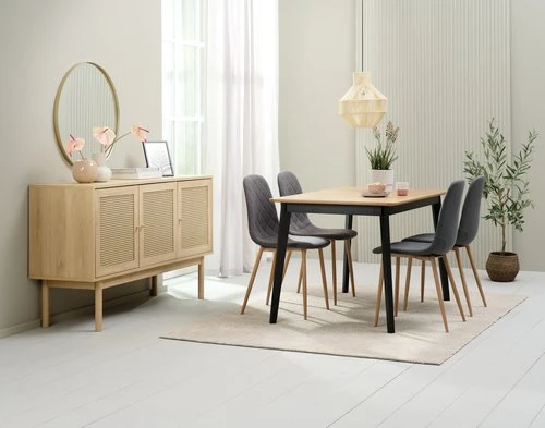 | Matériaux | Face avant: MDF (panneau de fibres moyenne densité)Les panneaux MDF consistent de fibres de bois coupés très fins, collés sous pression., PP (polypropylène), Partie supérieure: Panneau de particules, Sommier: Panneau de particules, Côté: Panneau de particules, Pieds: Bois de caoutchouc massif, Dossier: MDF (panneau de fibres moyenne densité)Les panneaux MDF consistent de fibres de bois coupés très fins, collés sous pression., Cadre: Bois de caoutchouc massif, Surface: FeuilleFoil est un type de placage déco avec une surface résistante à l'usure. La feuille est vernie ou imprégnée et est généralement collée sur un panneau de particules ou de MDF., Étagère: Panneau de particules |
