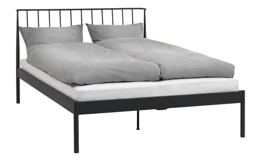 En métal. Vernis. Couchage : 140×200 cm. Exclus : sommier et matelas. l147 x L217 x H100 cm