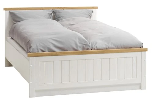 En MDF mélaminé, panneau de particules, placage feuille, hêtre massif. Pour matelas tapissiers, à ressorts ou en mousse. Couchage : 140×200 cm. Excl. sommier et matelas. l150 x L210 x H91 cm