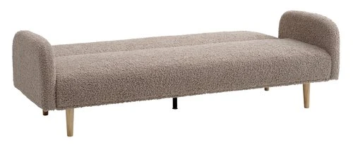 Structure : contreplaqué. Garnissage : mousse polyéther (25 kg/m³). Revêtement : polyester. Pieds : bois de caoutchouc massif. 3 places. Couchage 102×190 cm. l208 x H77 x P81 cm