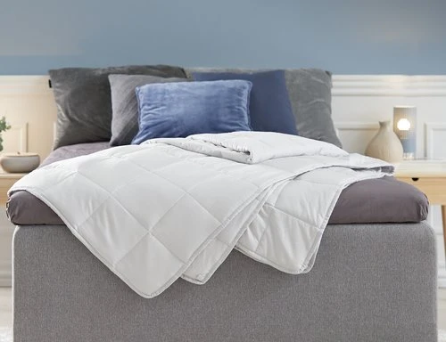Couette de qualité, garnissage : 95% billes de verre/5% fibre de polyester. La pression exercée par les billes de verre est reconnue pour son effet apaisant et relaxant. Enveloppe : 100% coton. Incl. sac de rangement. 135×200 cm, 6409g