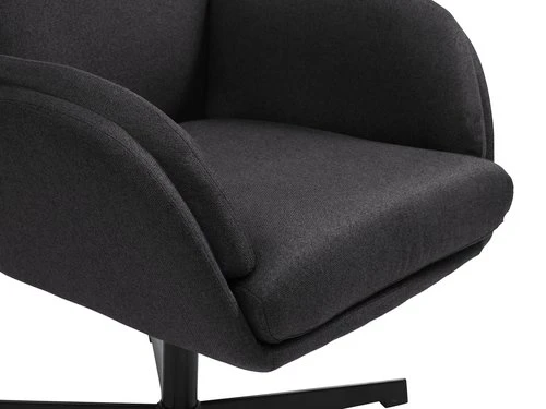 En contreplaqué, acier. Garnissage : mousse polyuréthane. Revêtement : polyuréthane. Base pivotante : acier. Inclinable. Incl. repose-pieds. l70 x H107 x P77 cm
