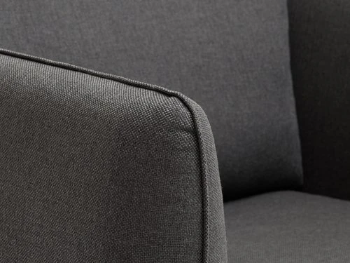 Structure : panneau de particules, contreplaqué. Garnissage : mousse polyuréthane (16/20, 30/35 kg/m³). Revêtement : polyester. Pieds : hêtre massif. l94 x H82 x P84 cm