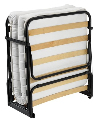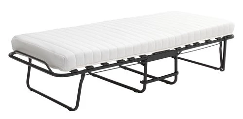 Cadre en acier. Lattes en bouleau. Garnissage matelas : mousse à mémoire de forme en polyuréthane (33 kg/m³) et mousse polyéther. Enveloppe : 100% polyester. Pliable. l80 x L193 x H45 cm
