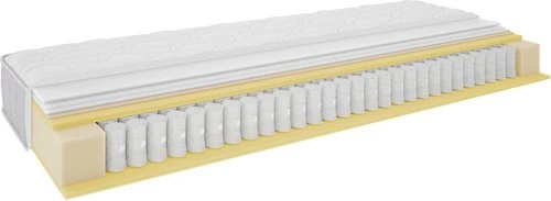 Matelas à ressorts 140×190 cm réversible de 24 cm d’épaisseur avec 262 ressorts ensachés/m², matelassé avec mousse polyéther. Le matelas possède un côté hiver et été afin de choisir entre un côté plus chaud ou plus respirant. L’enveloppe extensible possède un épais matelassage avec d’un côté de la mousse à mémoire de forme qui soulage la pression et de l’autre côté de la mousse polyéther. La mousse à mémoire de forme s’adapte précisément aux contours du corps.