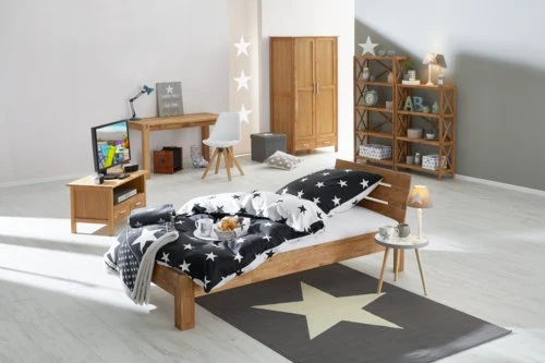 | Matériaux | Partie supérieure: Chêne massif, Sommier: Chêne massif, Côté: Chêne massif, Pieds: Chêne massif, Étagère: Chêne massif |