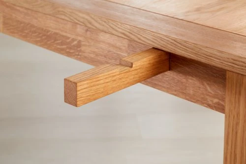 En panneau de particules placage chêne et chêne massif. Finition huilée. Excl. rallonges. l90 x L150 x H76 cm