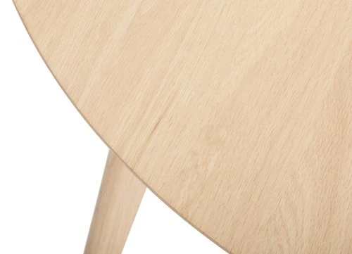 En MDF, contreplaqué, chêne massif, placage chêne. Pieds : placage chêne, chêne massif. Vernis. Ø120 x H75 cm