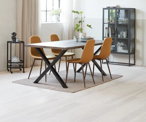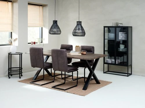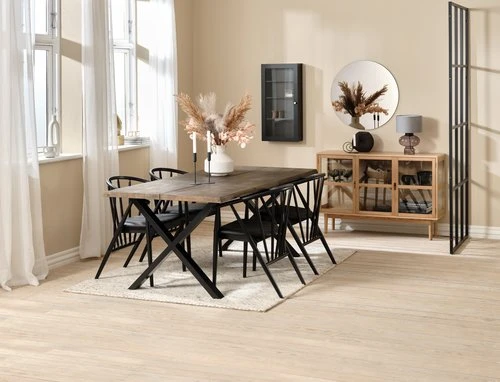 En chêne massif et acier. Huilée. Excl. rallonges. l95 x L200 x H75 cm