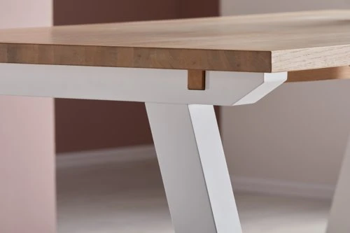 Cadre, plateau : placage chêne, chêne massif. Piètement : MDF, bouleau massif, pin massif. Huilé. Excl. rallonges. l90 x L200 x H75 cm