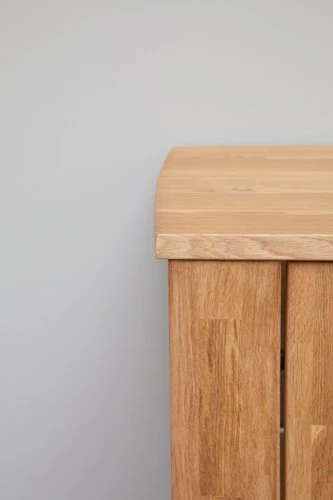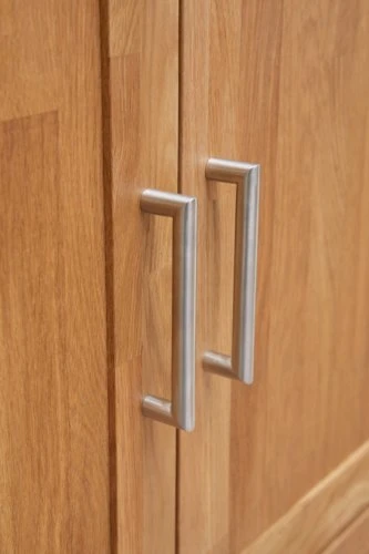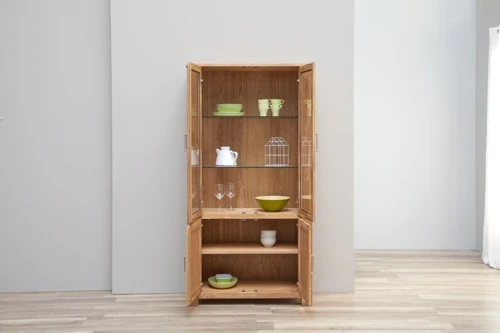 Chêne massif, placage chêne et verre trempé. l105 x H197 x P39 cm