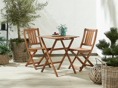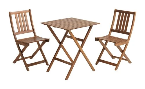 En bois d’acacia massif FSC® huilé. Pliable. l62 × L62 × H74 cm