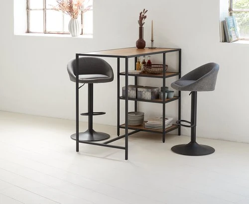 Plateau, étagère : MDF mélaminé. Cadre, piètement : acier. l60 x L120 x H100 cm