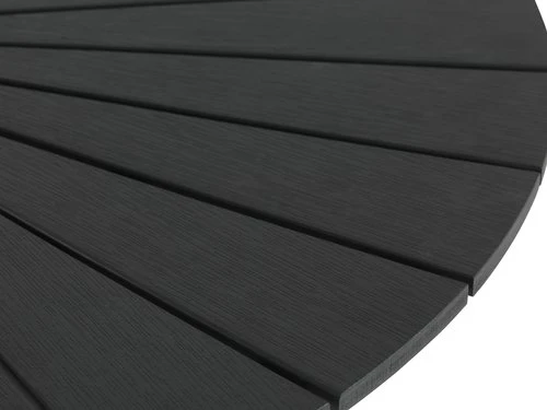 Cadre : aluminium. Plateau : imitation bois (polystyrène), fibre ciment. Ø110 x H74 cm