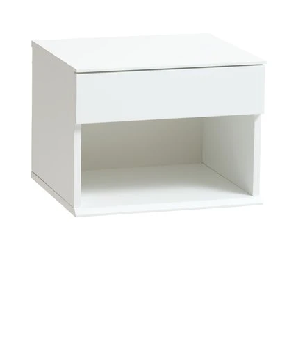 En MDF. Surface : mélaminé. Pieds : hêtre massif. l40 x H55 x P35 cm