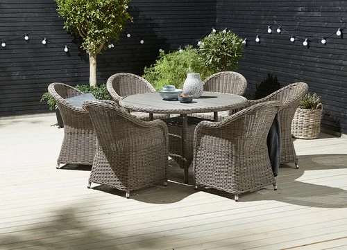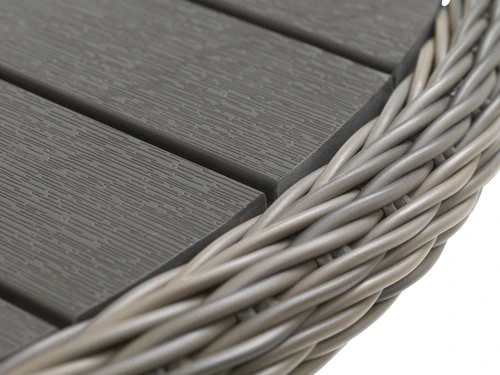 | Matériaux | Cadre: AluminiumL'aluminium est un matériel léger et élégant qui ne rouille pas. Il n'est pas nécessaire de le maintenir et le matériel est facile à nettoyer avec un chiffon humide., Polyrotin (polyéthylène)Le polyrotin est un type d’osier synthétique et léger. Il est résistant, protégé contre les UV et résistant aux intempéries., Dessus de table: Imitation bois (polystyrène)Cette imitation bois est faite à partir d’un matériau synthétique sans entretien dont la structure créé un effet de bois naturel. Elle est fabriquée à partir de plastique, tel que le polystyrène, qui constitue un matériau durable et résistant aux intempéries. Cette imitation bois est protégée contre les UV, ce qui garantit une surface dont la couleur ne change pas., Pieds: AluminiumL'aluminium est un matériel léger et élégant qui ne rouille pas. Il n'est pas nécessaire de le maintenir et le matériel est facile à nettoyer avec un chiffon humide., Polyrotin (polyéthylène)Le polyrotin est un type d’osier synthétique et léger. Il est résistant, protégé contre les UV et résistant aux intempéries. |