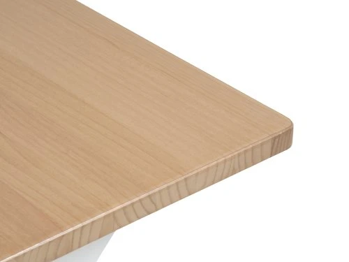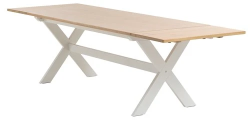 En bouleau et pin massif, acier. Vernis. Excl. rallonges. l90 x L190 x H75 cm