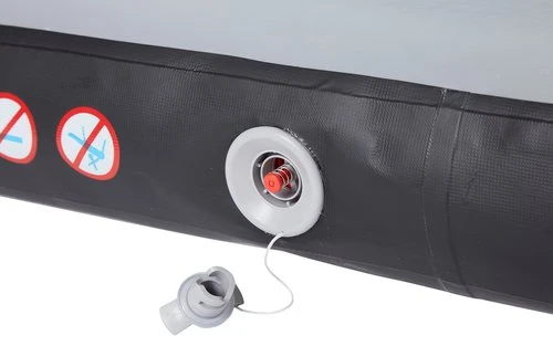 | Caractéristiques | Pompe électrique, Construction intérieure avec 16 000 fils stabilisateursUne construction intérieure de 16 000 fils relie les surfaces supérieure et inférieure du tapis de gymnastique. Cela permet d'augmenter la stabilité, d'obtenir une surface plane et d'améliorer le décollage., Valve à fermeture automatiqueUne vanne à fermeture automatique possède un mécanisme qui permet à l'air comprimé de circuler dans un sens et l'empêche de circuler dans l'autre., Couverture à double couche qui conserve sa formeLe revêtement à double épaisseur rend les côtés du tapis de gymnastique plus épais et donc plus durables. Cela permet au tapis de gymnastique de conserver sa forme et de prolonger sa durée de vie., Deux ou plusieurs tapis de gymnastique peuvent être assemblésLe bande auto-agrippant permet de relier deux ou plusieurs tapis de gymnastique pour obtenir une plus grande surface de saut. |